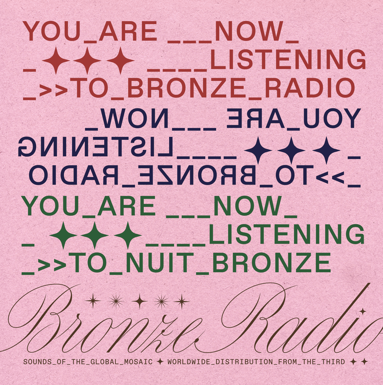 BRONZE is available to listen on all web browsers. Listeners can instantly stream the broadcast on any internet-enabled device. Listen live to curated mixes and soundscapes.